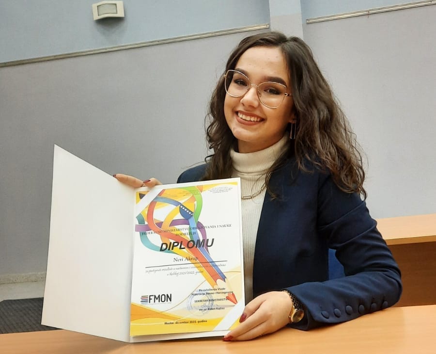 čenica Srednje škole “Busovača” Nera Akrap primila je diplomu za postignute rezultate u nastavnim i vannastavnim aktivnostima u školskoj 2021./2022. godini, a Srednjoj školi “Busovača” je uručeno priznanje za prepoznavanje, poticanje i usmjeravanje talentiranih učenika ka putovima utemeljenim na znanju.