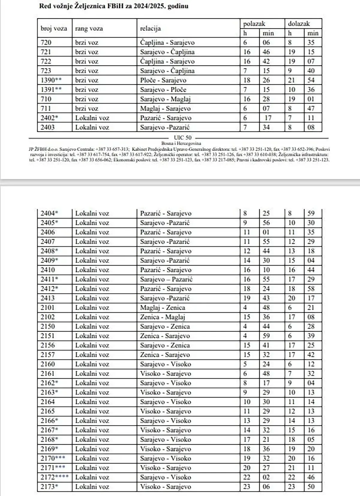 Termine polazaka i dolazaka vlakova kao i relacije donosimo u priloženoj tablici, a ispod nje i prateće napomene.