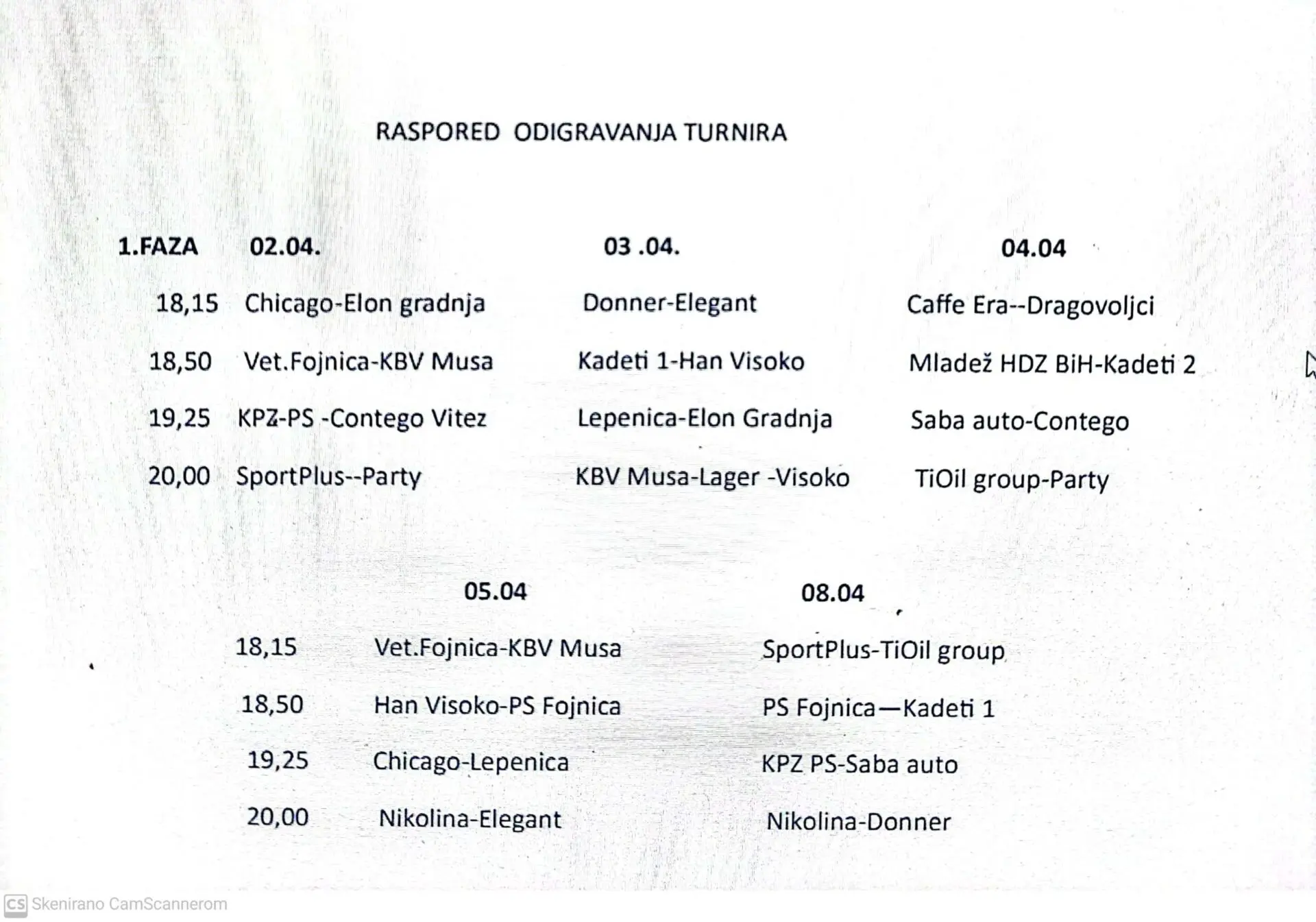 Donosimo raspored utakmica za 1. fazu turnira: