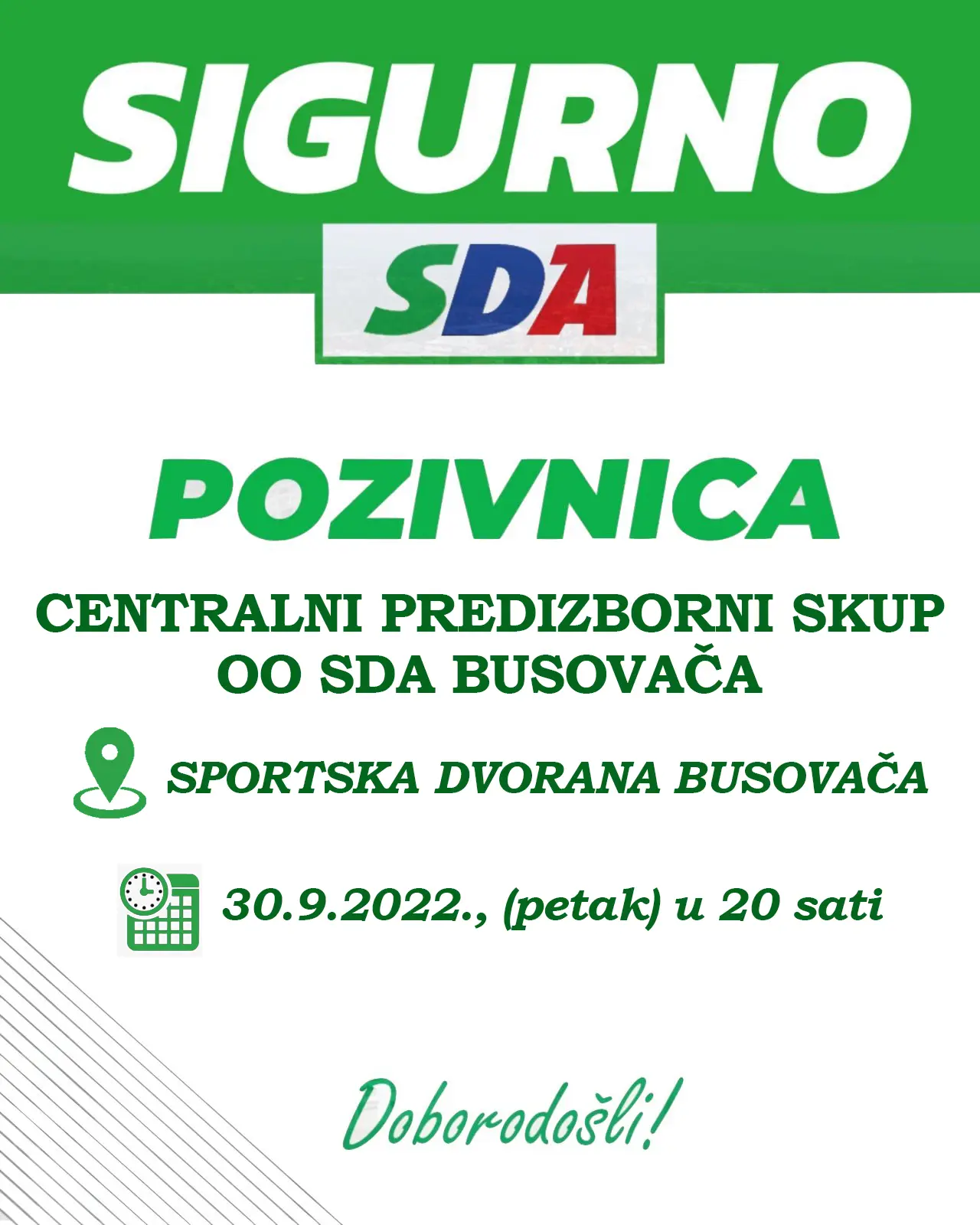 Nakon izborne kampanje koja je trajala trideset dana, večeras je središnji skup OO SDA Busovača. Održat će se u sportskoj dvorani u Busovači, s početkom u 20 sati.