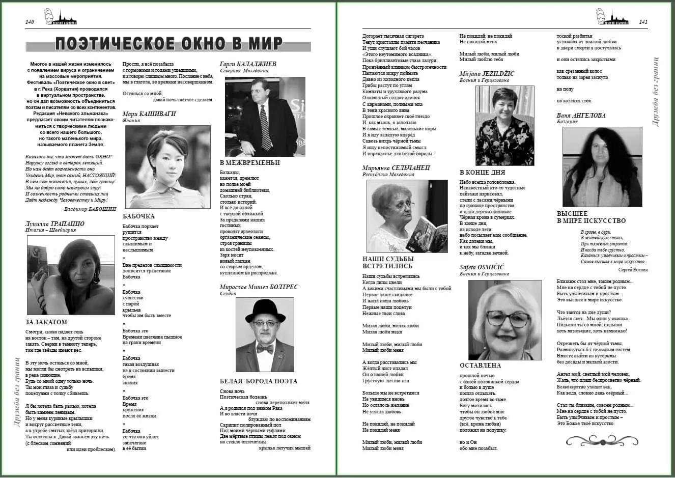 Naime, njena pjesma “U smiraj dana” objavljena je u najstarijem književnom časopisu u Rusiji. Riječ je o časopisu “Nevski almanah” koji desetljećima izlazi u Sankt Petersburgu, a u kojem je pjesme objavljivao i veliki A.S. Puškin. Mirjanina pjesma, uz pjesme drugih autora iz Italije, Švicarske, Hrvatske, Makedonije, Srbije, Bugarske, Rusije i Japana, objavljena je u posljednjem broju.