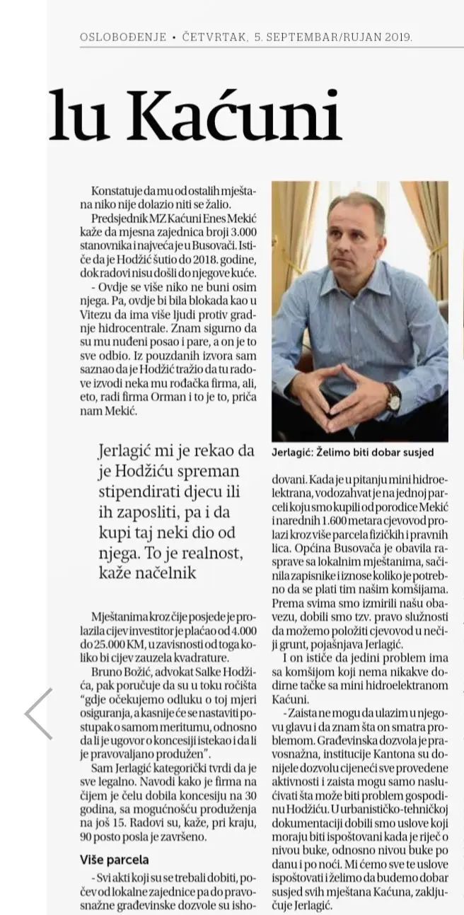 U nastavku pročitajte članak novina “Oslobođenje” o problemu mini hidroelektrane i borbe Salke Hodžića.