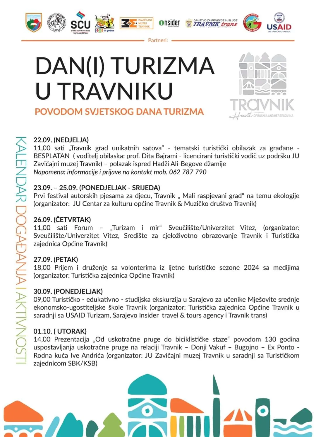 Manifestacija počinje 22.09.2024. godine događajem “Travnik grad unikatnih satova”, tematskim turističkim obilaskom za građane, a od 23. do 25.09.2024.godine na programu je “Mali raspjevani grad”, prvi travnički festival autorskih pjesama za djecu.