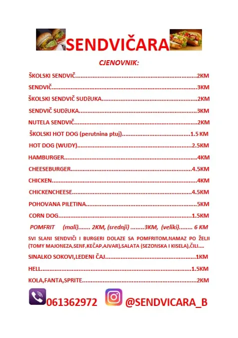 Novi restoran brze hrane “SENDVIČARA” počeo je sa radom 26.02.2024. godine pored autobusne stanice “Busovača”, preko puta srednje škole.